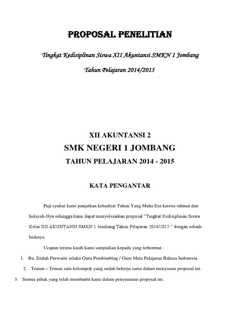 Contoh proposal penelitian, proposal kegiatan sekolah, dan proposal usaha bisnis. Rancangan kegiatan yang berupa tulisan dengan terperinci dan sistematis disebut dengan proposal. Keativitas guru pendidikan agama islam dalam meningkatkan kualitas pembelajaran siswa kelas vii di sekolah menengah pertama al hikmah kawunganten tahun pelajaran 2014/2015 semester ii proposal skripsi diajukan untuk memenuhi salah satu syarat penelitian guna memperoleh gelar sarjana pendidikan islam (s.pd.i) program studi pendidikan agama islam (pai) oleh ibnu aziz. Sebelum membuat sebuah penelitian, biasanya peneliti akan menyerahkan proposal penelitian kepada seseorang yang dianggap perlu menyetujuinya. Contoh proposal kelas v sekolah dasar.
